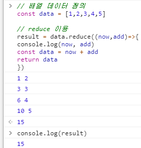 ex) data에 있는 인덱스 값 만큼 reduce가 돌아 값을 누적 시킨다.